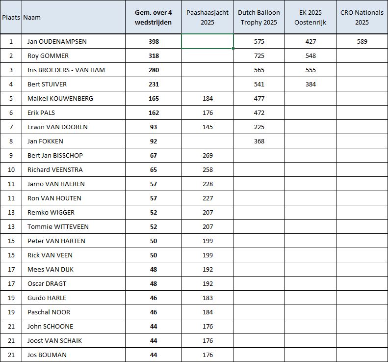 Eindstand Nationale Selectie 2025